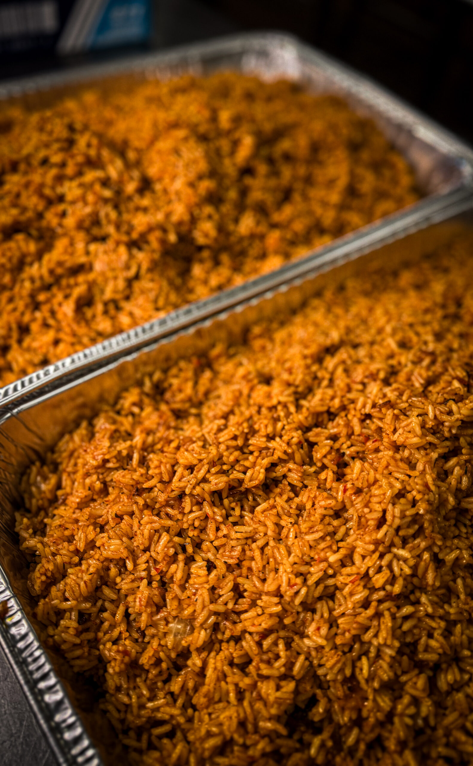 Long gran rice simmered in a rich tomato sauce blended with bell peppers and traditional spices, creating a smoky, authentic Nigerian Party Jollof rice.